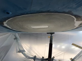 Ich habe die Rumpf-Öffnung des ehemaligen Saildrive komplett zulaminieren lassen, statt diese einfach mit einer Adapter-Platte zu verschließen.